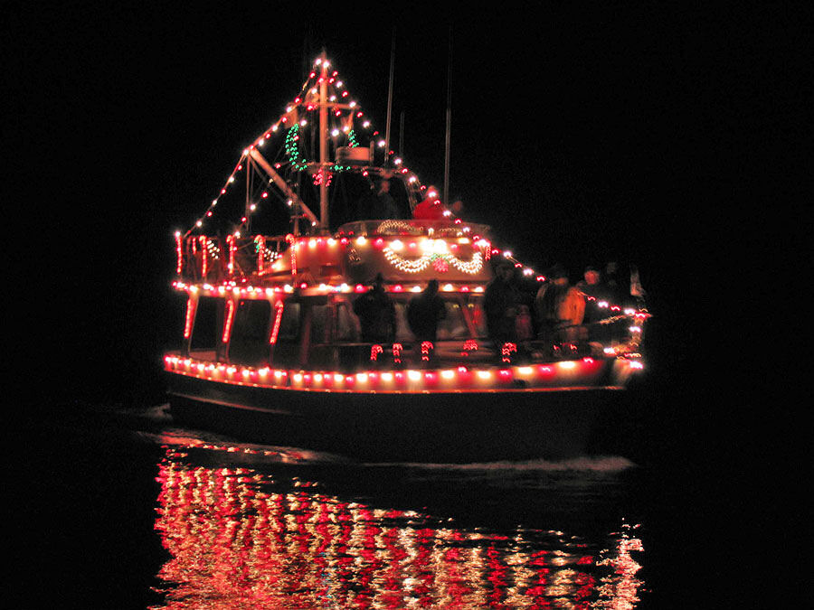 Serendipity was decorated in red and white, with lots of candy canes, for the 2005 Lighted Boat Parade.